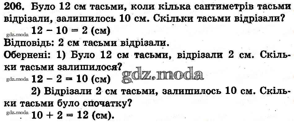 ГДЗ решение к заданию № 206 Математика 1 класс Богданович (учебник 2012) Генеза 2012 бесплатно на гдз.мода!