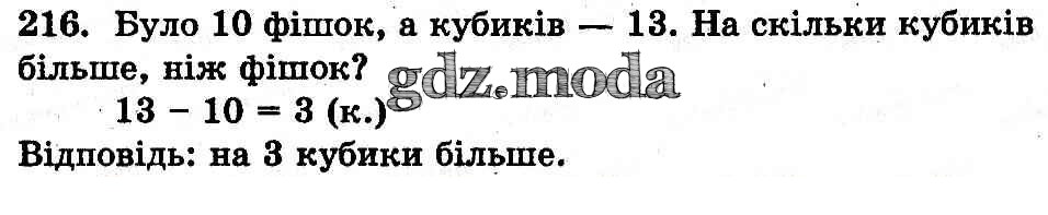 ГДЗ решение к заданию № 216 Математика 1 класс Богданович (учебник 2012) Генеза 2012 бесплатно на гдз.мода!