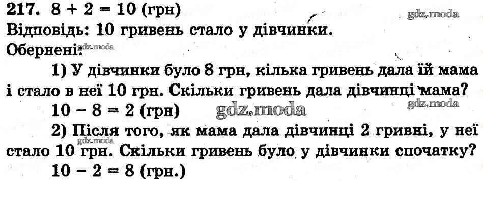ГДЗ решение к заданию № 217 Математика 1 класс Богданович (учебник 2012) Генеза 2012 бесплатно на гдз.мода!