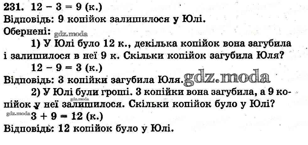 ОТВЕТ на задание № 231 Учебник по Математике 1 класс Богданович