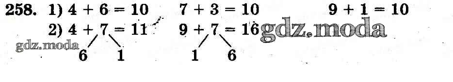 ОТВЕТ на задание № 258 Учебник по Математике 1 класс Богданович