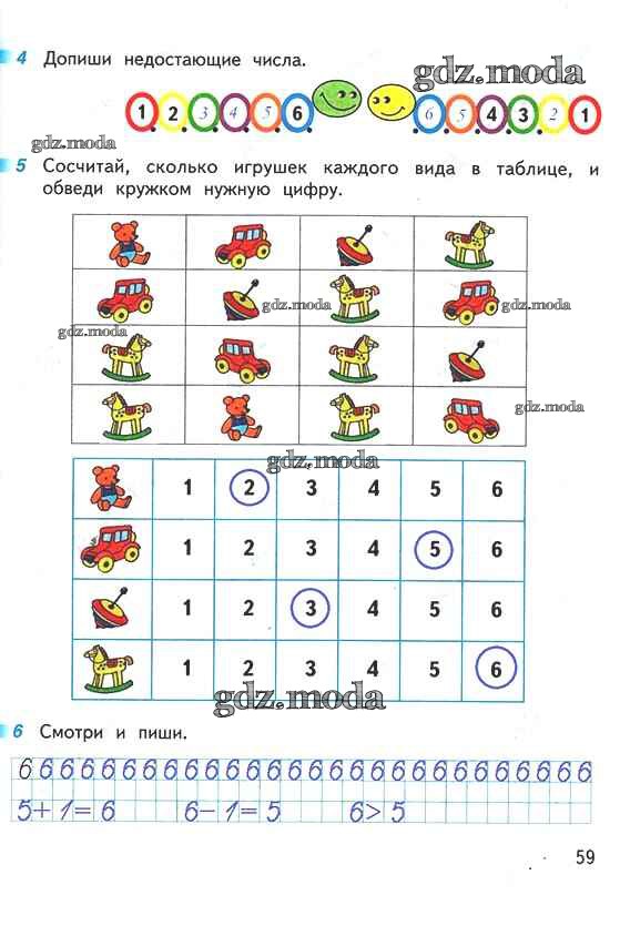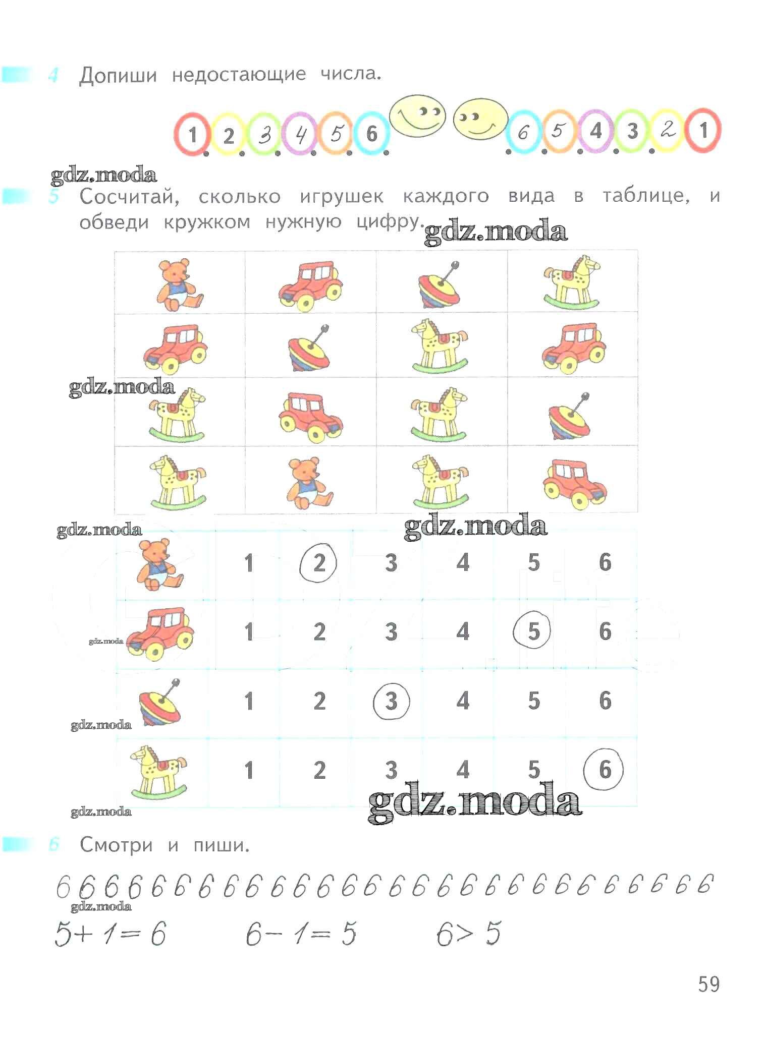 ОТВЕТ на задание № 59 Рабочая тетрадь по Математике 1 класс Дорофеев Перспектива