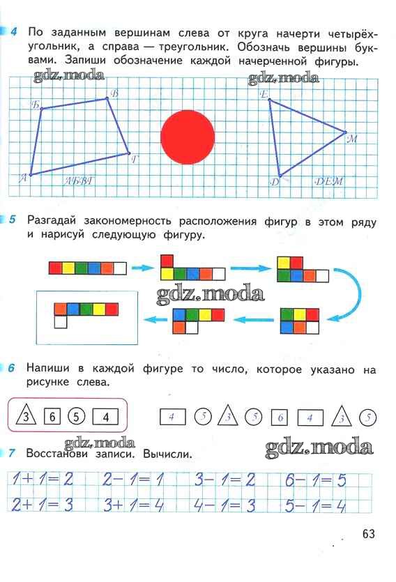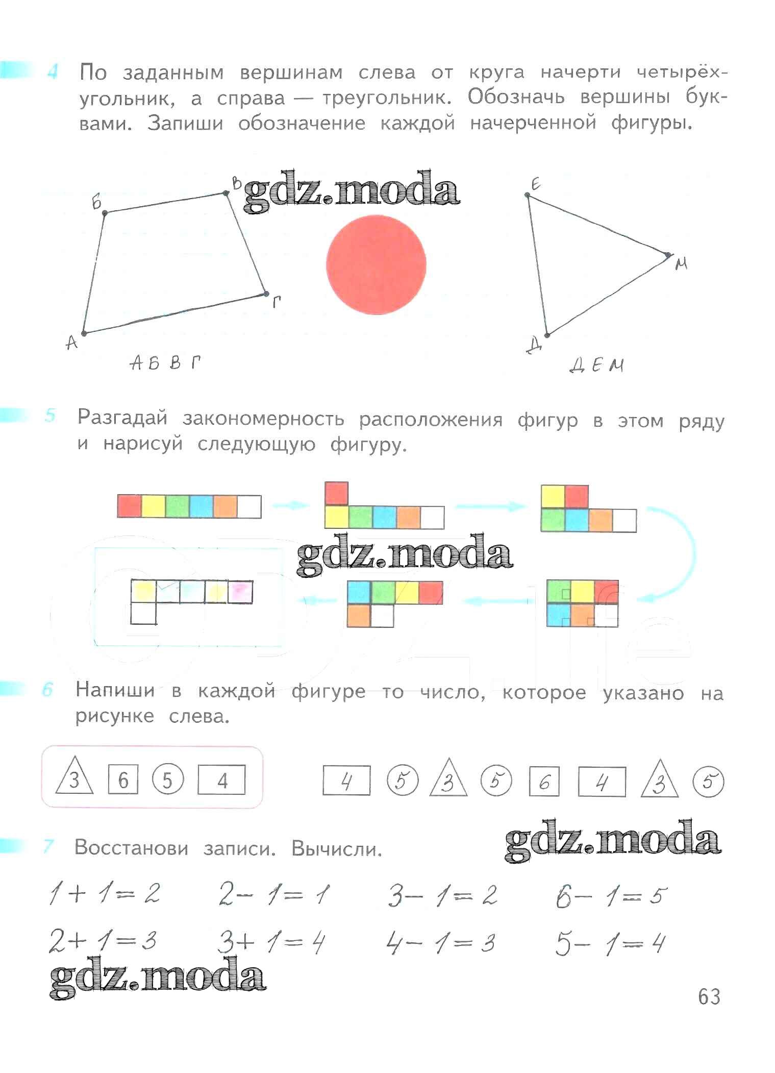 ОТВЕТ на задание № 63 Рабочая тетрадь по Математике 1 класс Дорофеев Перспектива