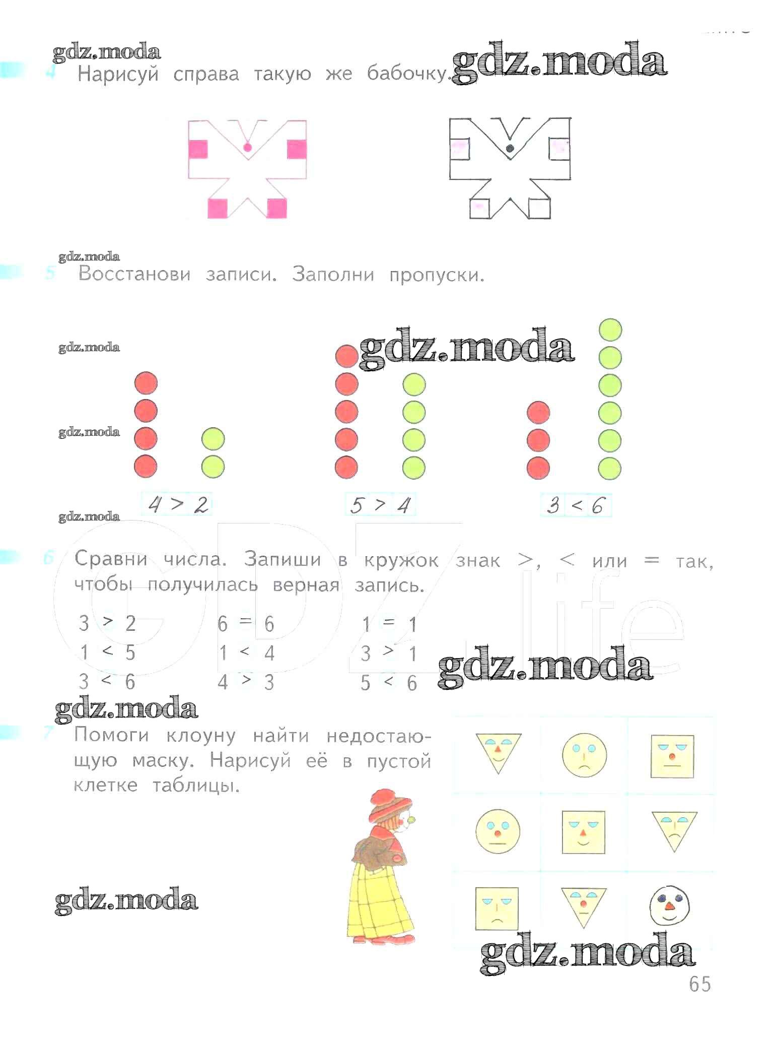 ОТВЕТ на задание № 65 Рабочая тетрадь по Математике 1 класс Дорофеев Перспектива