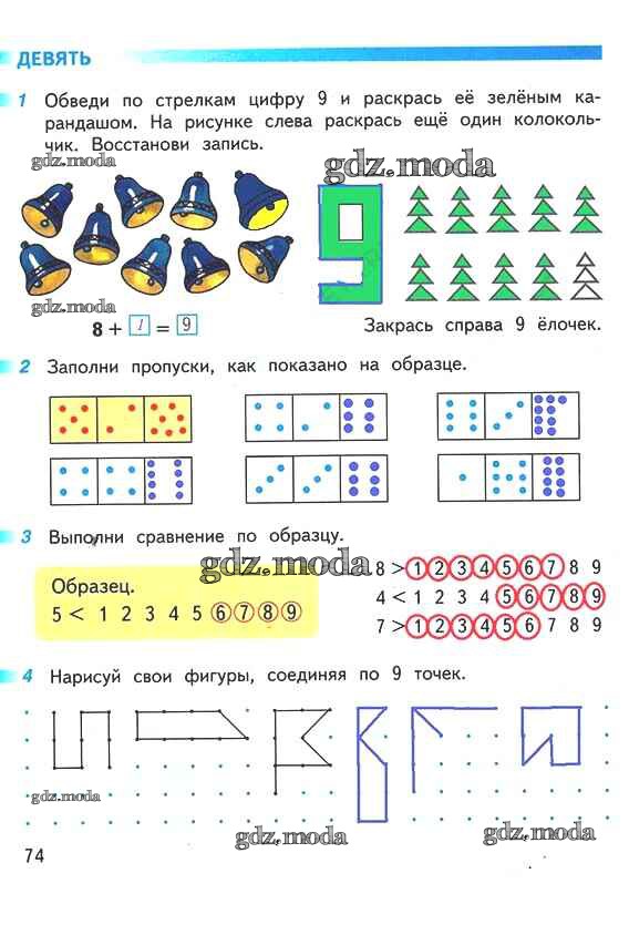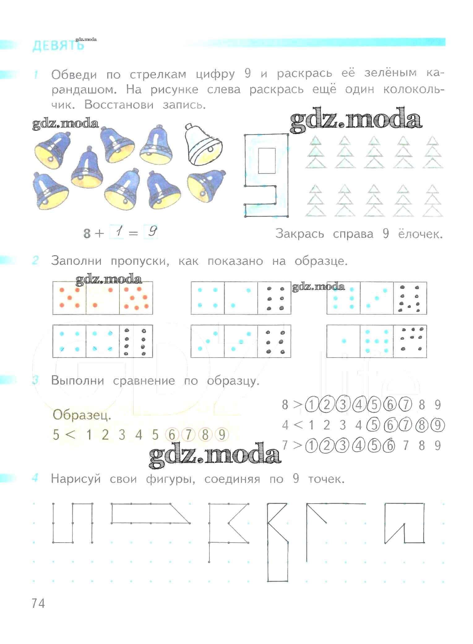ОТВЕТ на задание № 74 Рабочая тетрадь по Математике 1 класс Дорофеев Перспектива