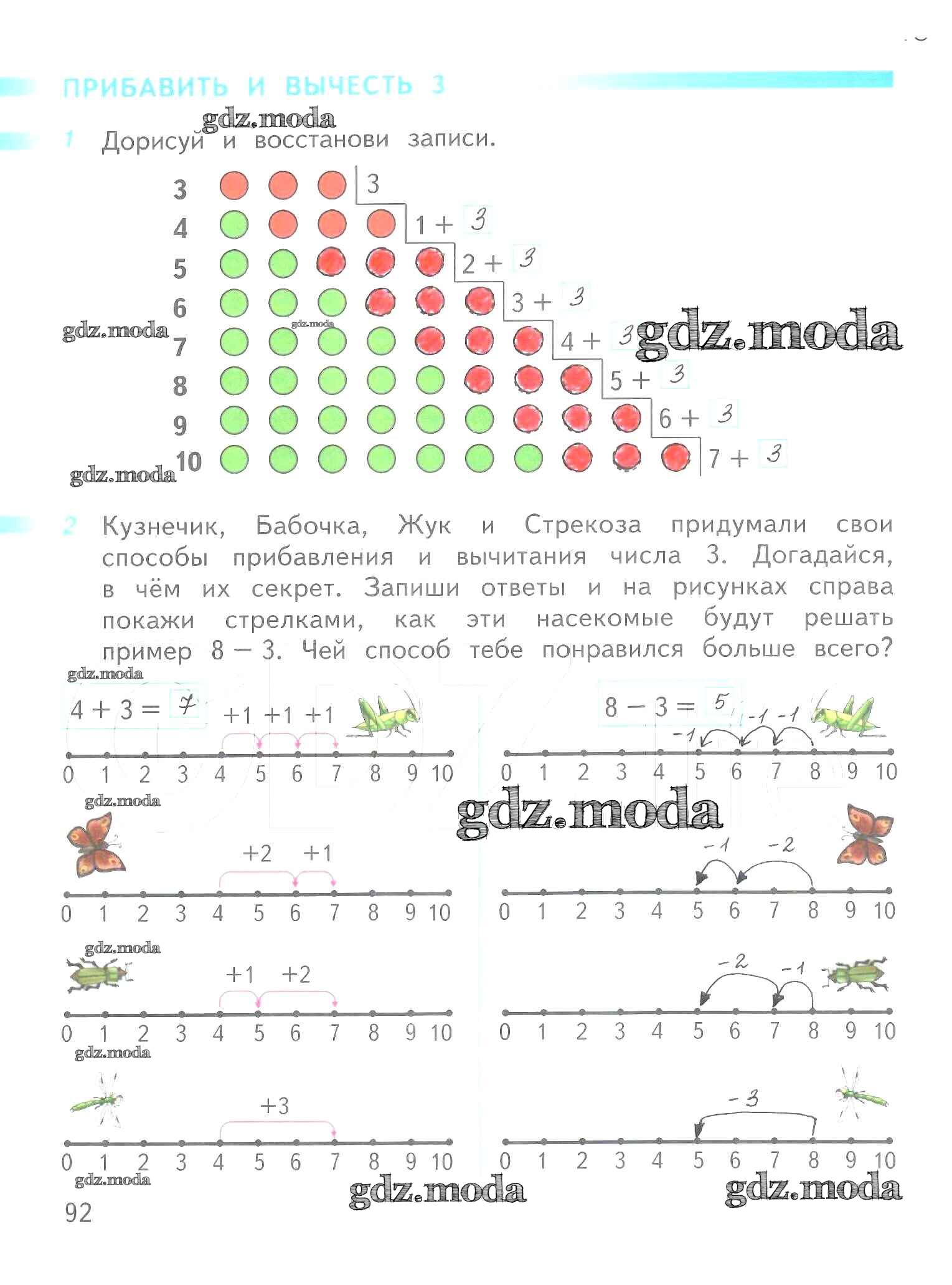 ОТВЕТ на задание № 92 Рабочая тетрадь по Математике 1 класс Дорофеев Перспектива