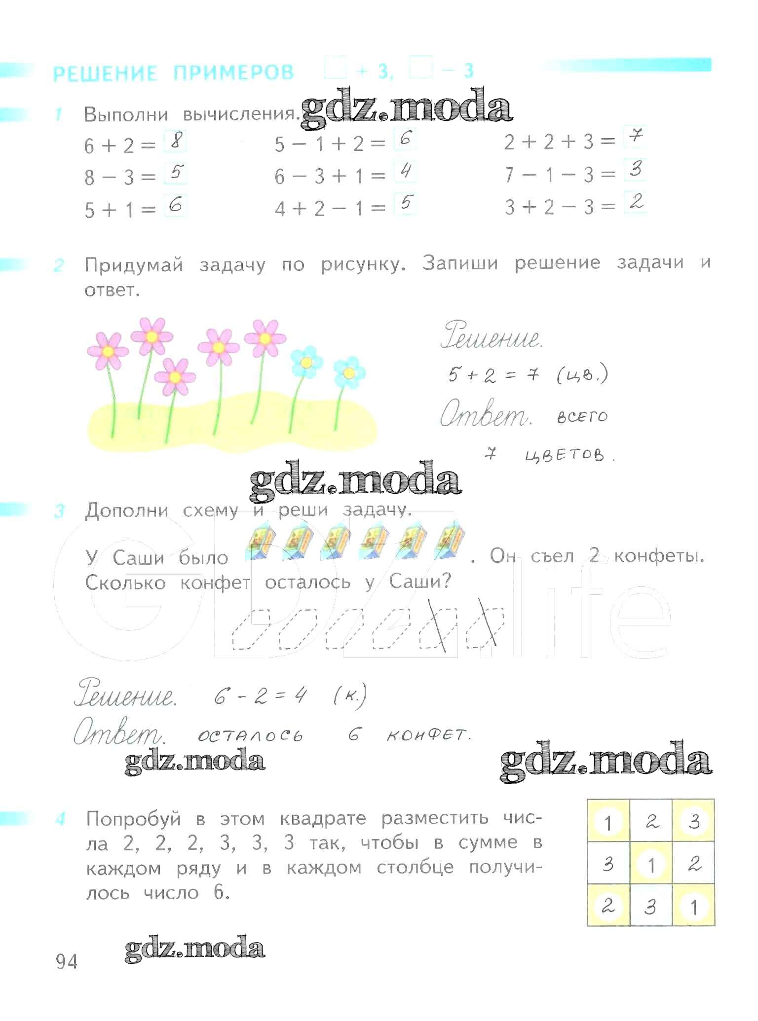 ОТВЕТ на задание № 94 Рабочая тетрадь по Математике 1 класс Дорофеев Перспектива