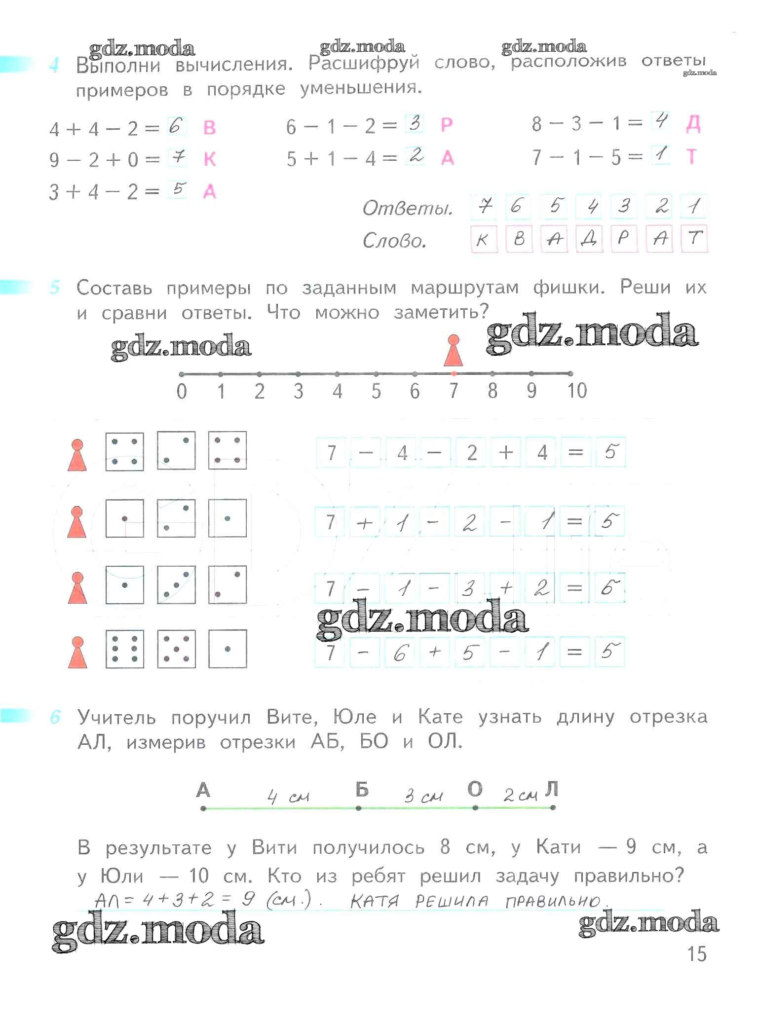 ОТВЕТ на задание № 15 Рабочая тетрадь по Математике 1 класс Дорофеев Перспектива