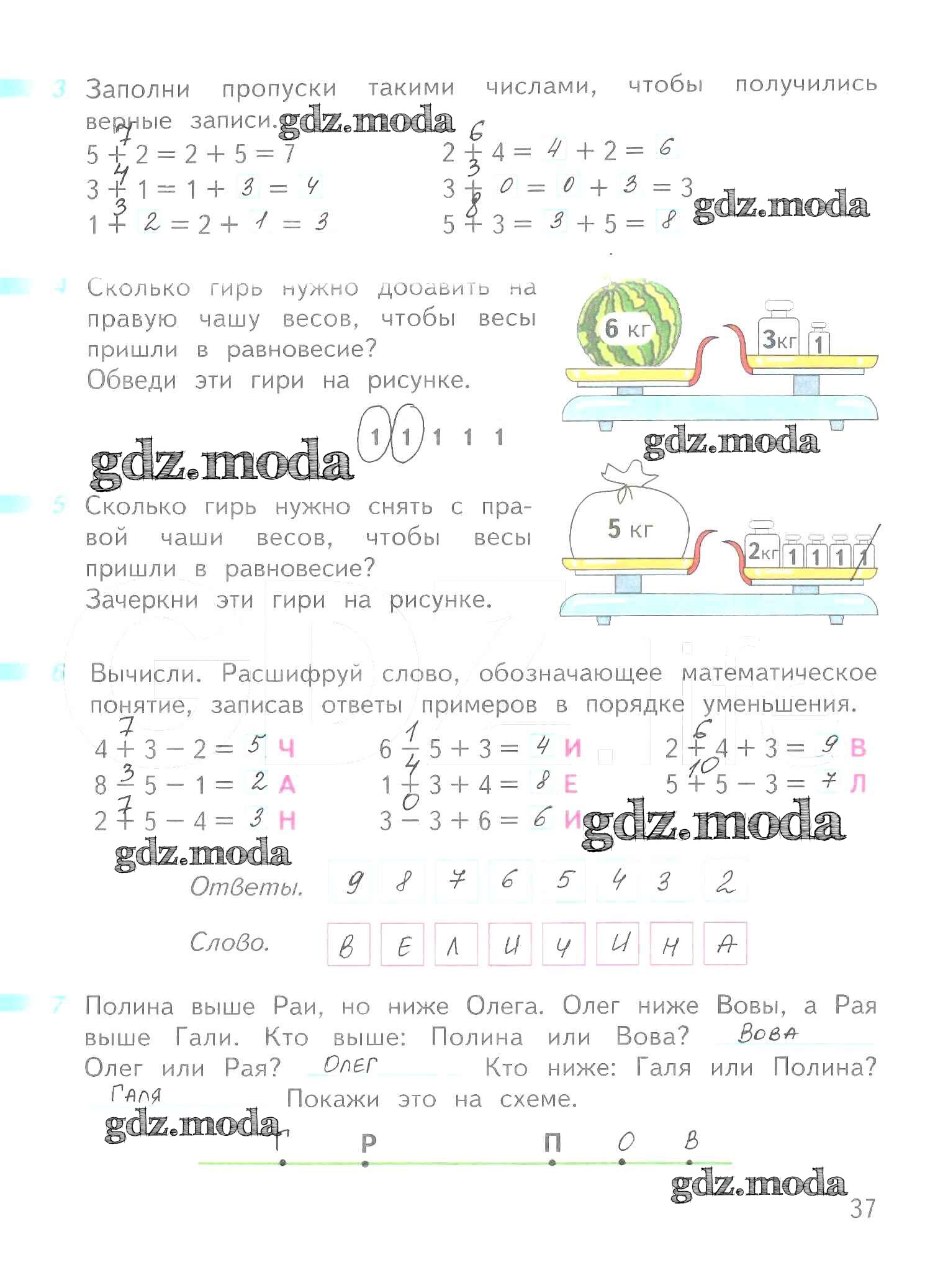 ОТВЕТ на задание № 37 Рабочая тетрадь по Математике 1 класс Дорофеев Перспектива