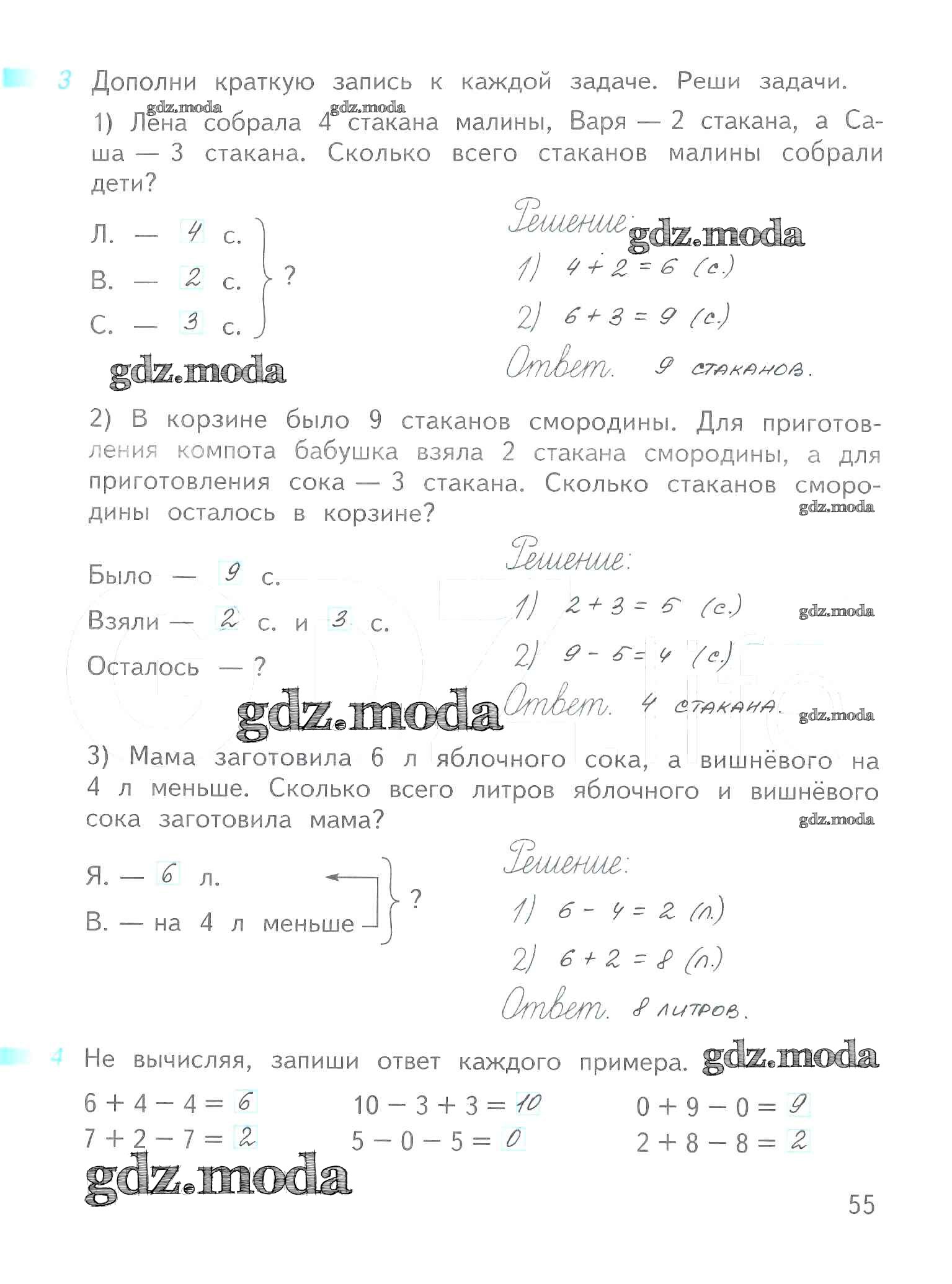 ОТВЕТ на задание № 55 Рабочая тетрадь по Математике 1 класс Дорофеев Перспектива
