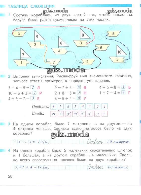 ОТВЕТ на задание № 58 Рабочая тетрадь по Математике 1 класс Дорофеев Перспектива