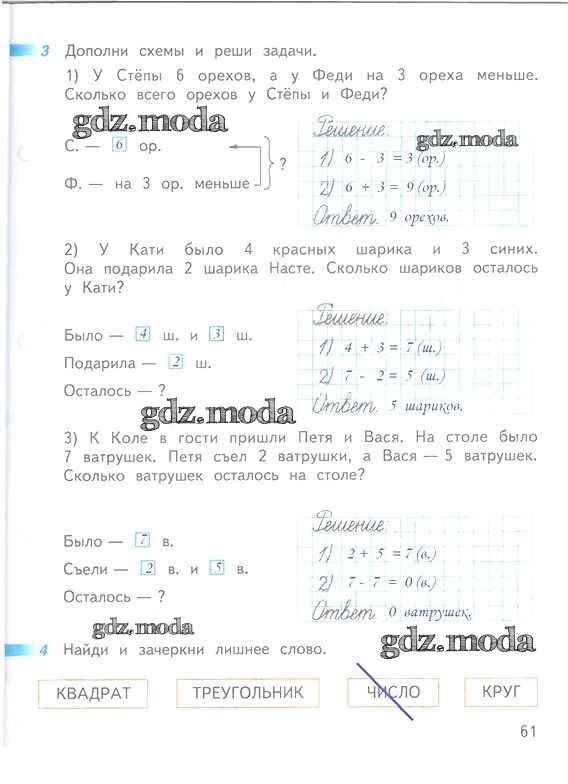 ОТВЕТ на задание № 61 Рабочая тетрадь по Математике 1 класс Дорофеев Перспектива