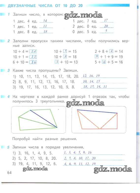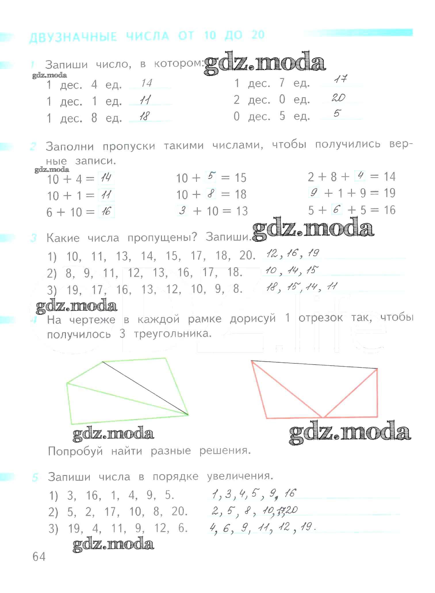 ОТВЕТ на задание № 64 Рабочая тетрадь по Математике 1 класс Дорофеев Перспектива