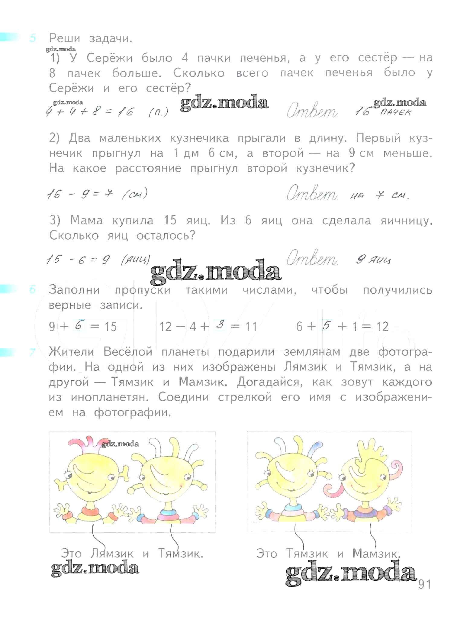 ОТВЕТ на задание № 91 Рабочая тетрадь по Математике 1 класс Дорофеев Перспектива