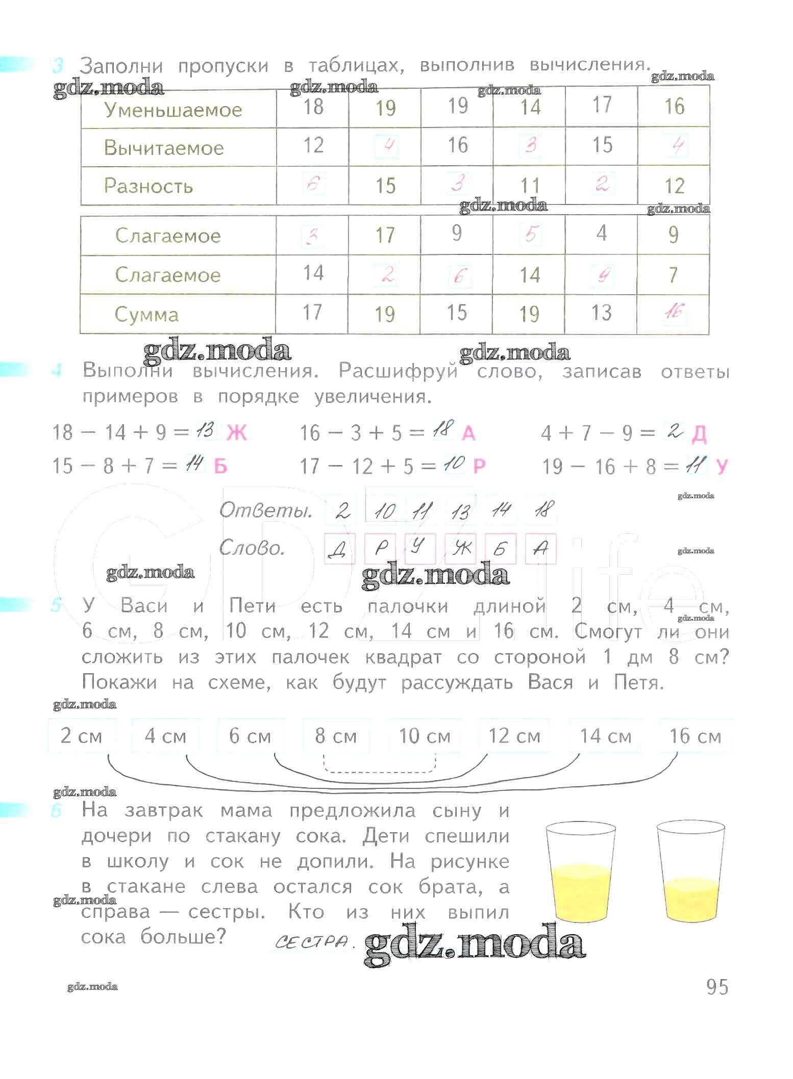 ОТВЕТ на задание № 95 Рабочая тетрадь по Математике 1 класс Дорофеев Перспектива