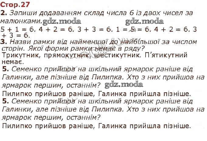 ГДЗ решение к заданию № 27 Математика 1 класс Лишенко Генеза 2018 бесплатно на гдз.мода!