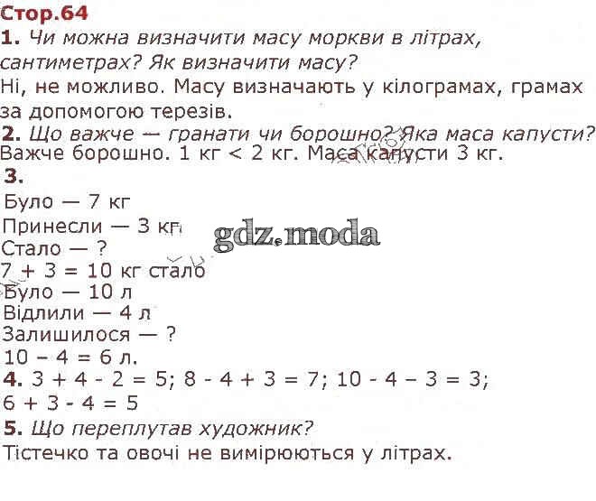 ОТВЕТ на задание № 64 Учебник по Математике 1 класс Лишенко
