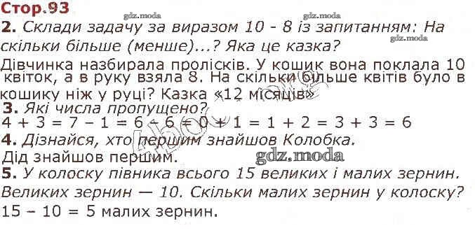 ГДЗ решение к заданию № 93 Математика 1 класс Лишенко Генеза 2018 бесплатно на гдз.мода!