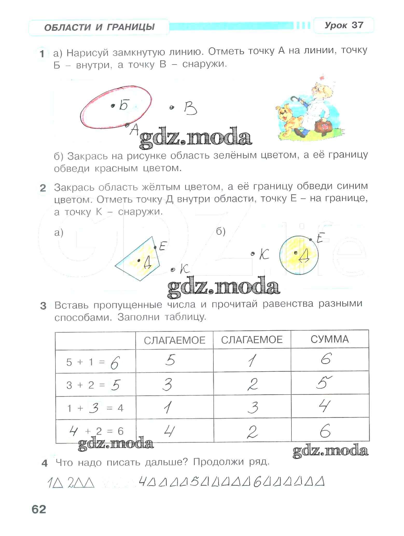 ГДЗ решение к заданию № 62 Математика 1 класс рабочая тетрадь Петерсон Л.Г. Ювента 2016 Часть 1, Часть 2, Часть 3 ФГОС бесплатно на гдз.мода!