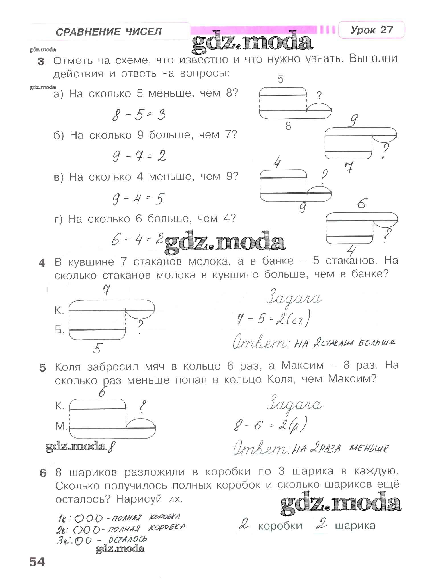ГДЗ решение к заданию № 54 Математика 1 класс рабочая тетрадь Петерсон Л.Г. Ювента 2016 Часть 1, Часть 2, Часть 3 ФГОС бесплатно на гдз.мода!