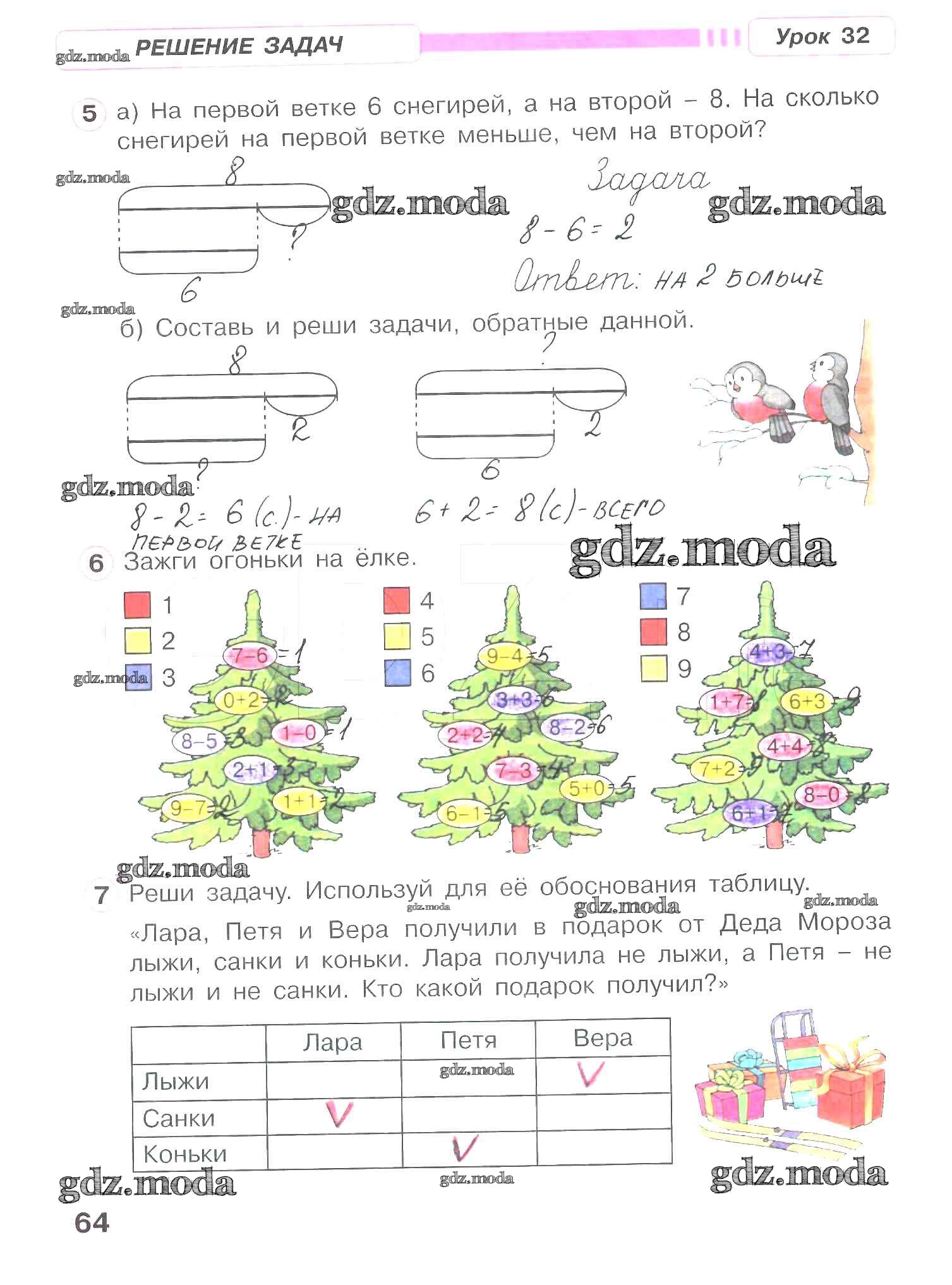 ГДЗ решение к заданию № 64 Математика 1 класс рабочая тетрадь Петерсон Л.Г. Ювента 2016 Часть 1, Часть 2, Часть 3 ФГОС бесплатно на гдз.мода!