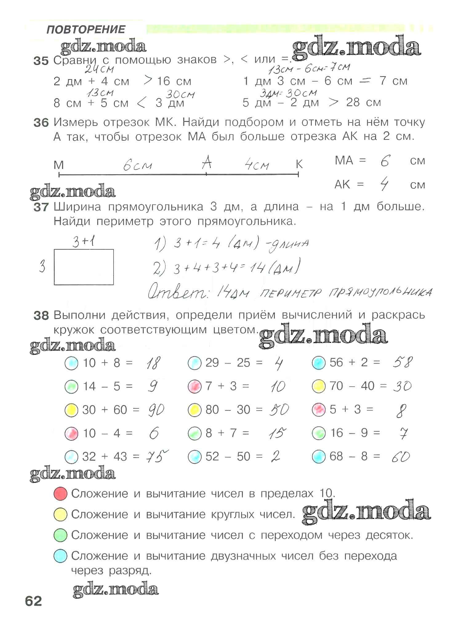 ГДЗ решение к заданию № 62 Математика 1 класс рабочая тетрадь Петерсон Л.Г. Ювента 2016 Часть 1, Часть 2, Часть 3 ФГОС бесплатно на гдз.мода!