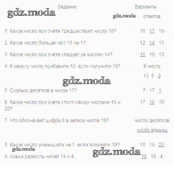Выбери правильный ответ и подчеркни его. Варианты ответов К числу 10 8 9 число десятков число единиц