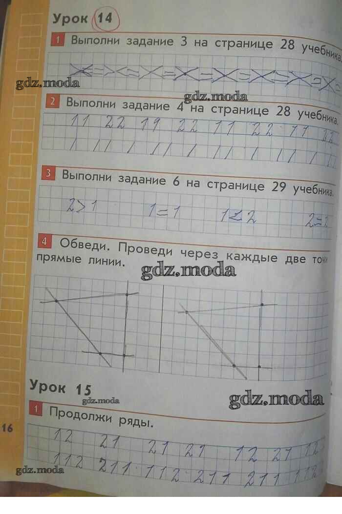ГДЗ решение к заданию № 16 Математика 1 класс рабочая тетрадь Демидова Т.Е. Баласс 2015 ФГОС бесплатно на гдз.мода!