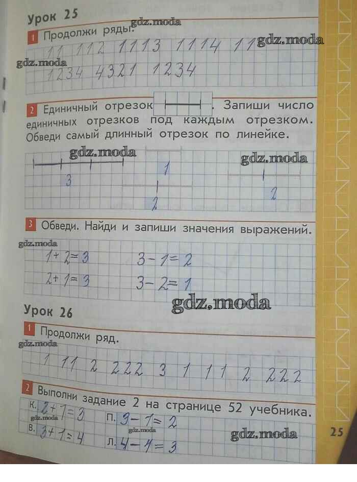ГДЗ решение к заданию № 25 Математика 1 класс рабочая тетрадь Демидова Т.Е. Баласс 2015 ФГОС бесплатно на гдз.мода!