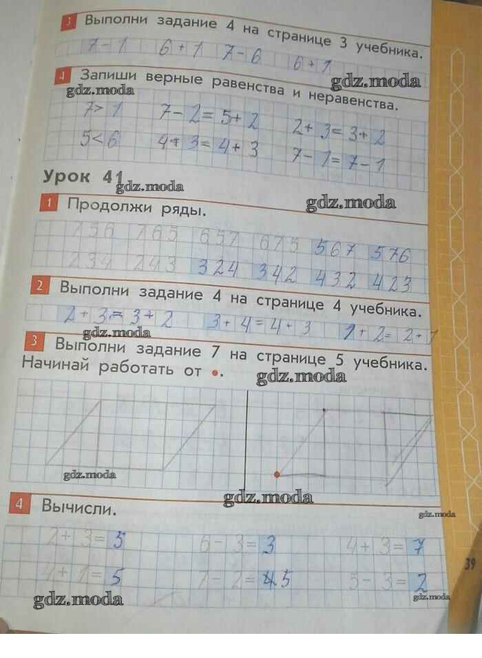 ГДЗ решение к заданию № 39 Математика 1 класс рабочая тетрадь Демидова Т.Е. Баласс 2015 ФГОС бесплатно на гдз.мода!