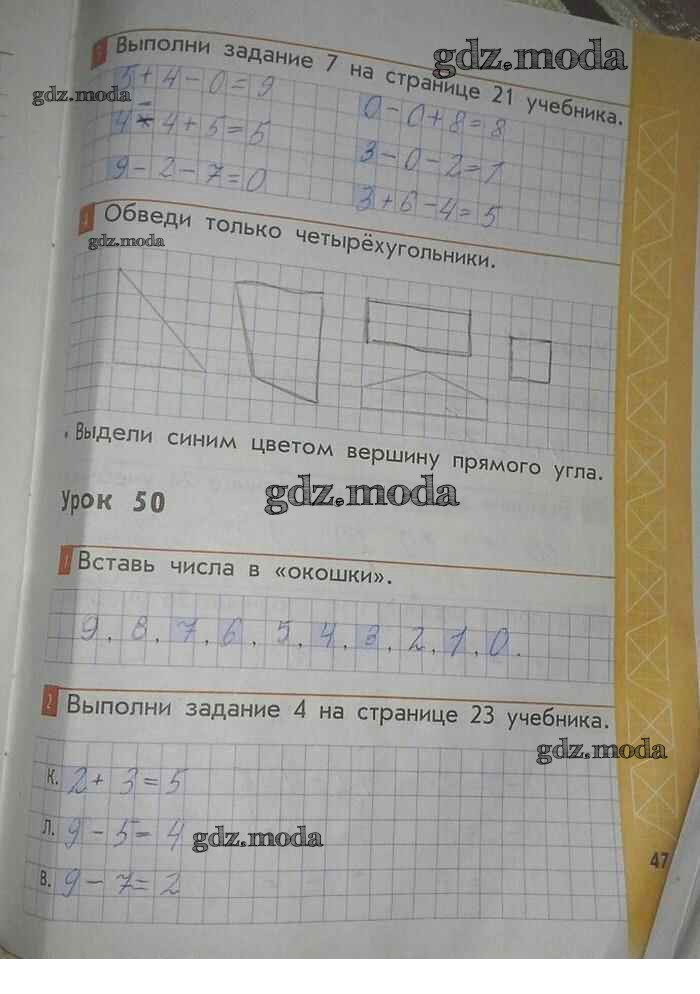 ГДЗ решение к заданию № 47 Математика 1 класс рабочая тетрадь Демидова Т.Е. Баласс 2015 ФГОС бесплатно на гдз.мода!