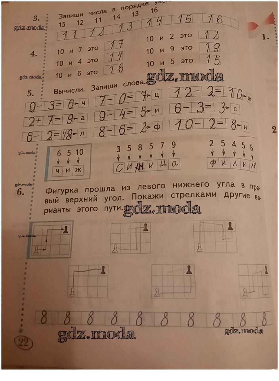 ГДЗ решение к заданию № 22 Математика 1 класс рабочая тетрадь Кочурова Е.Э. Вентана-граф 2020 бесплатно на гдз.мода!
