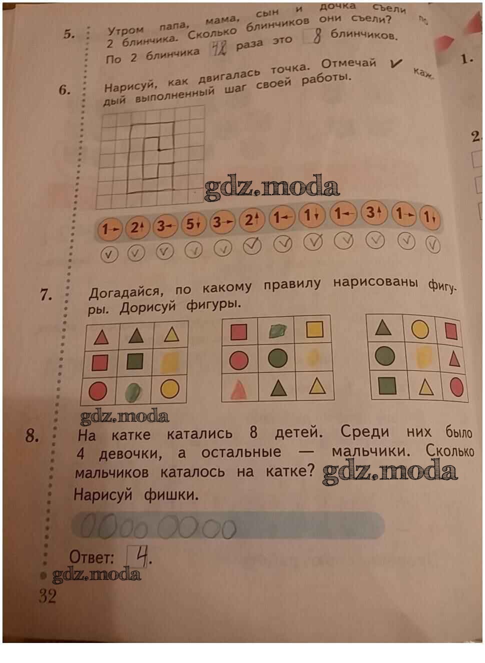 ОТВЕТ на задание № 32 Рабочая тетрадь по Математике 1 класс Кочурова Начальная школа XXI века