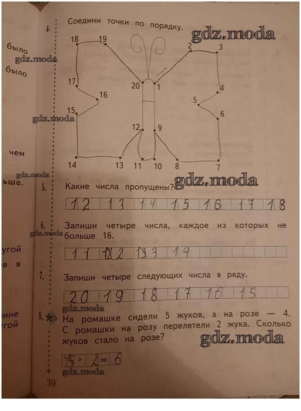 ГДЗ решение к заданию № 39 Математика 1 класс рабочая тетрадь Кочурова Е.Э. Вентана-граф 2020 бесплатно на гдз.мода!