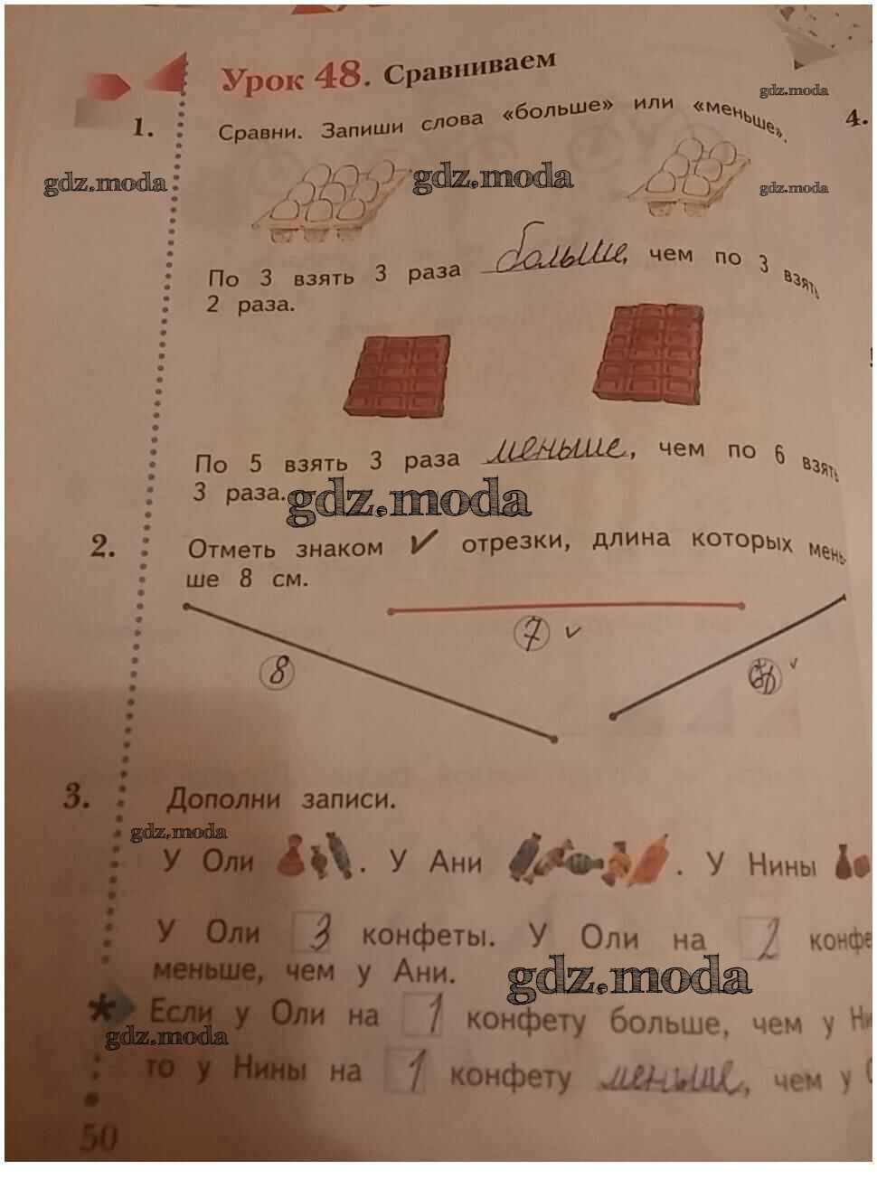 ГДЗ решение к заданию № 50 Математика 1 класс рабочая тетрадь Кочурова Е.Э. Вентана-граф 2020 бесплатно на гдз.мода!