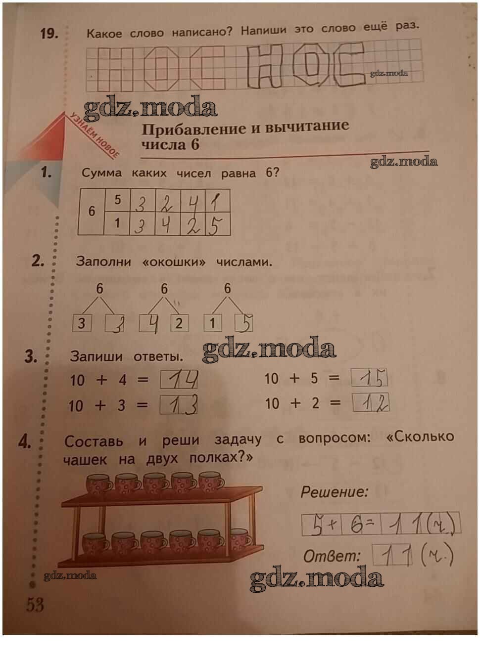 ГДЗ решение к заданию № 53 Математика 1 класс рабочая тетрадь Кочурова Е.Э. Вентана-граф 2020 бесплатно на гдз.мода!