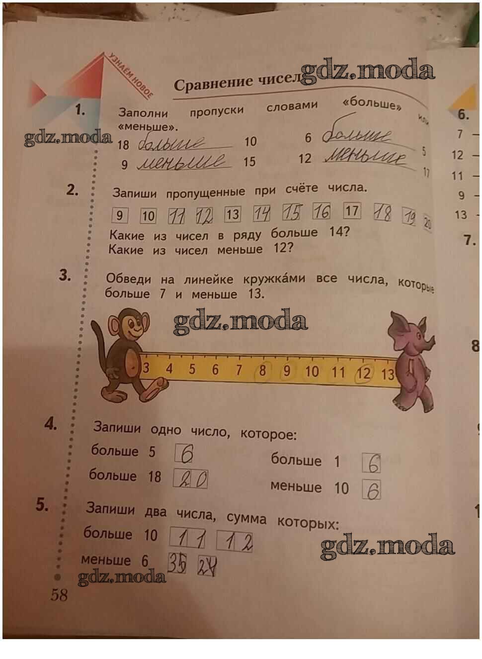 ГДЗ решение к заданию № 58 Математика 1 класс рабочая тетрадь Кочурова Е.Э. Вентана-граф 2020 бесплатно на гдз.мода!