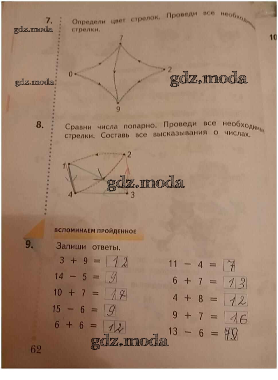 ГДЗ решение к заданию № 62 Математика 1 класс рабочая тетрадь Кочурова Е.Э. Вентана-граф 2020 бесплатно на гдз.мода!
