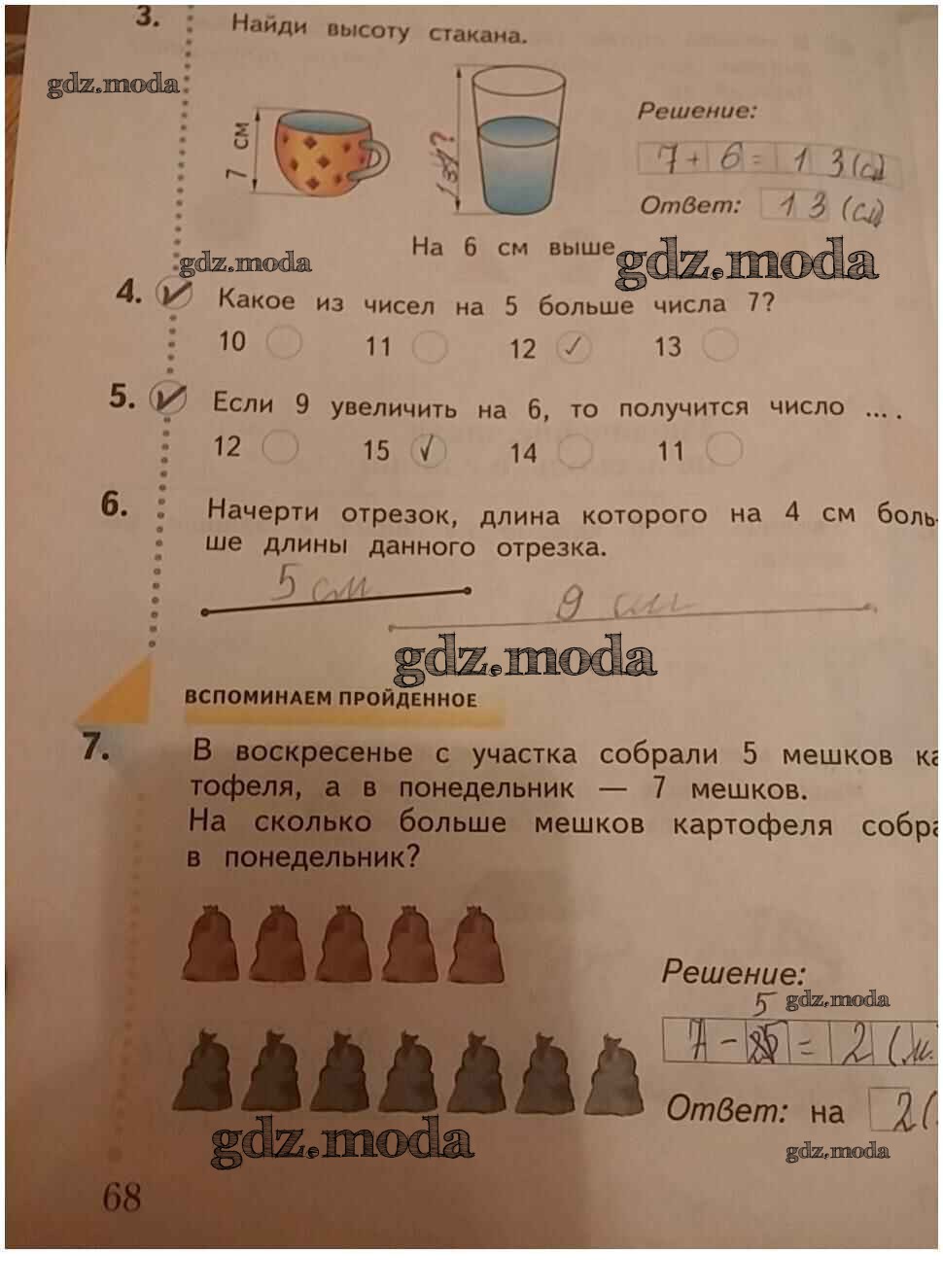 ГДЗ решение к заданию № 68 Математика 1 класс рабочая тетрадь Кочурова Е.Э. Вентана-граф 2020 бесплатно на гдз.мода!