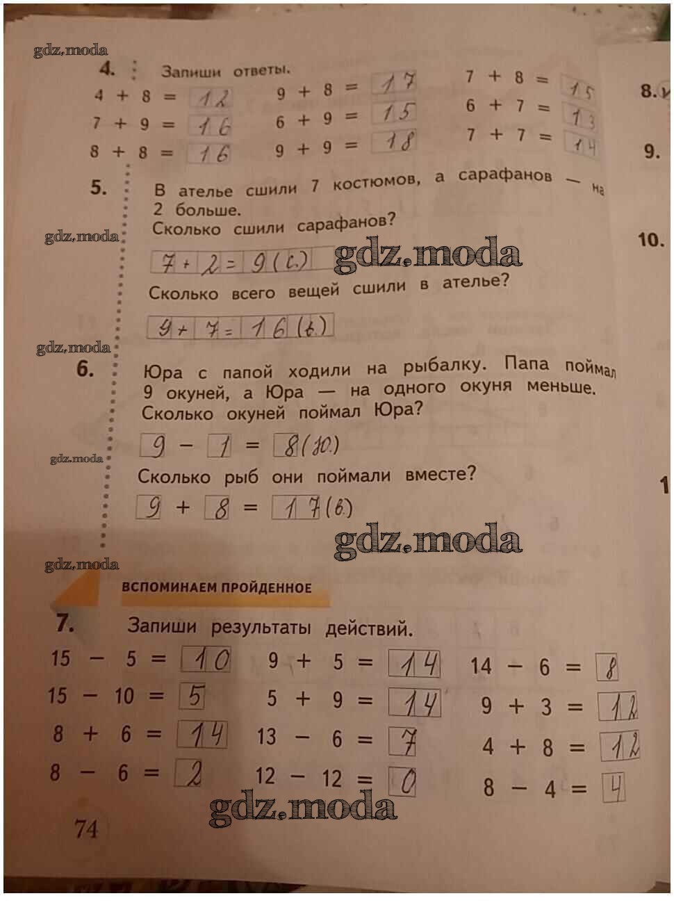 ГДЗ решение к заданию № 74 Математика 1 класс рабочая тетрадь Кочурова Е.Э. Вентана-граф 2020 бесплатно на гдз.мода!