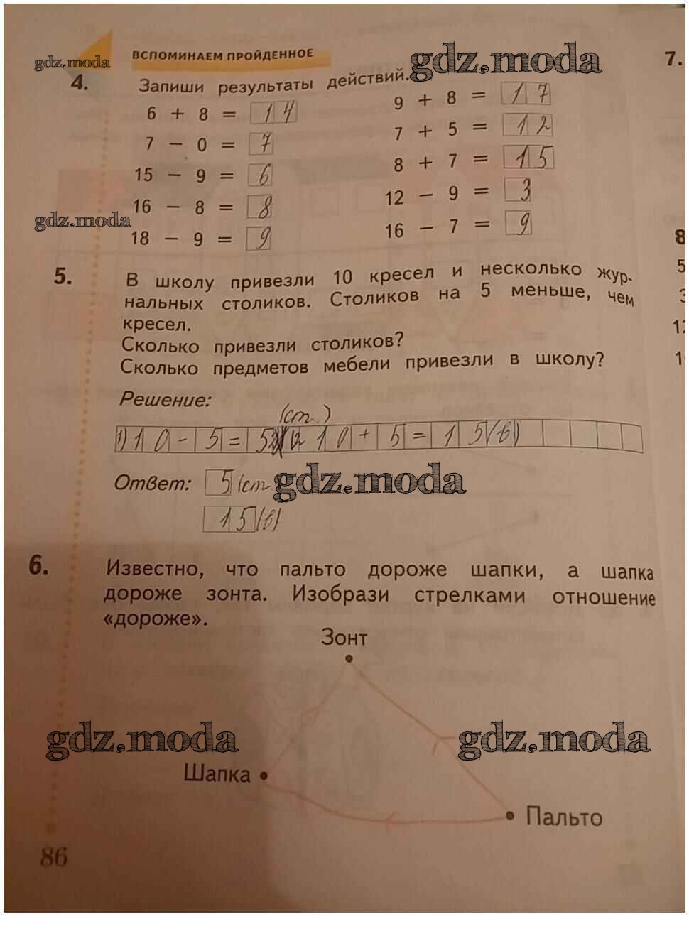 ГДЗ решение к заданию № 86 Математика 1 класс рабочая тетрадь Кочурова Е.Э. Вентана-граф 2020 бесплатно на гдз.мода!