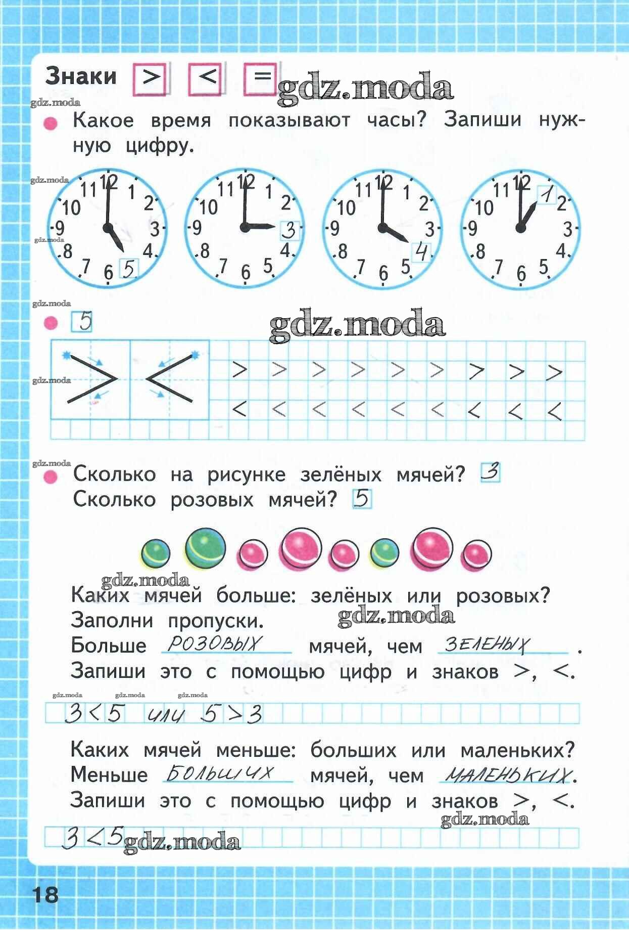 ОТВЕТ на задание № 18 Рабочая тетрадь по Математике 1 класс Моро Школа России