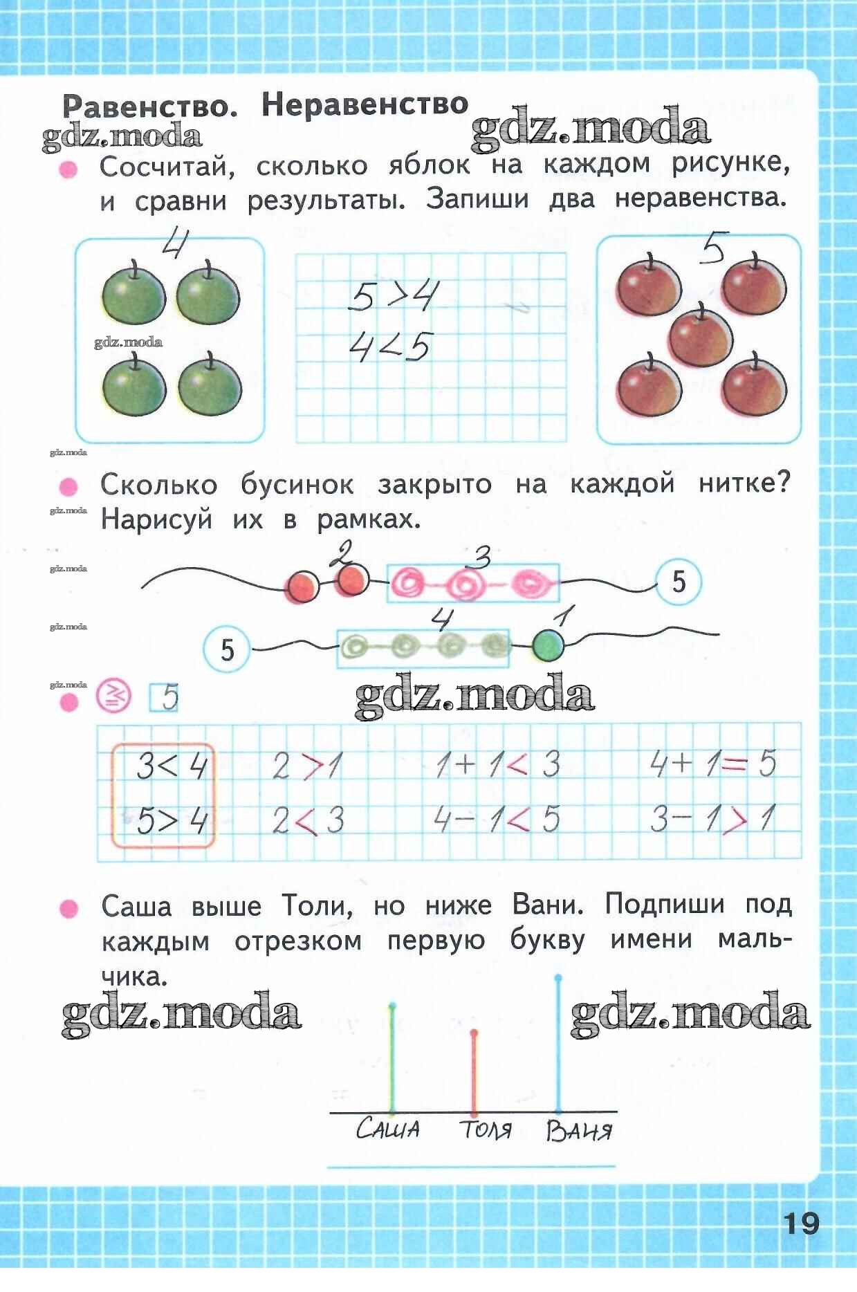ОТВЕТ на задание № 19 Рабочая тетрадь по Математике 1 класс Моро Школа России