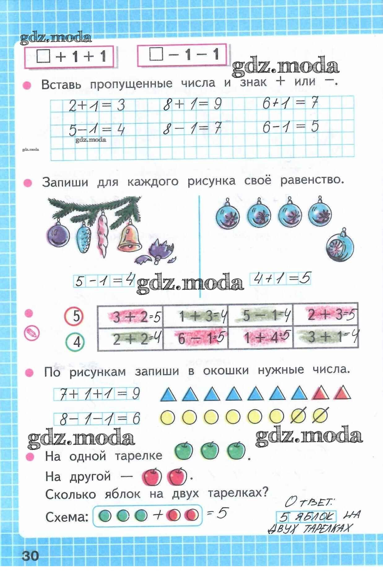 ОТВЕТ на задание № 30 Рабочая тетрадь по Математике 1 класс Моро Школа России