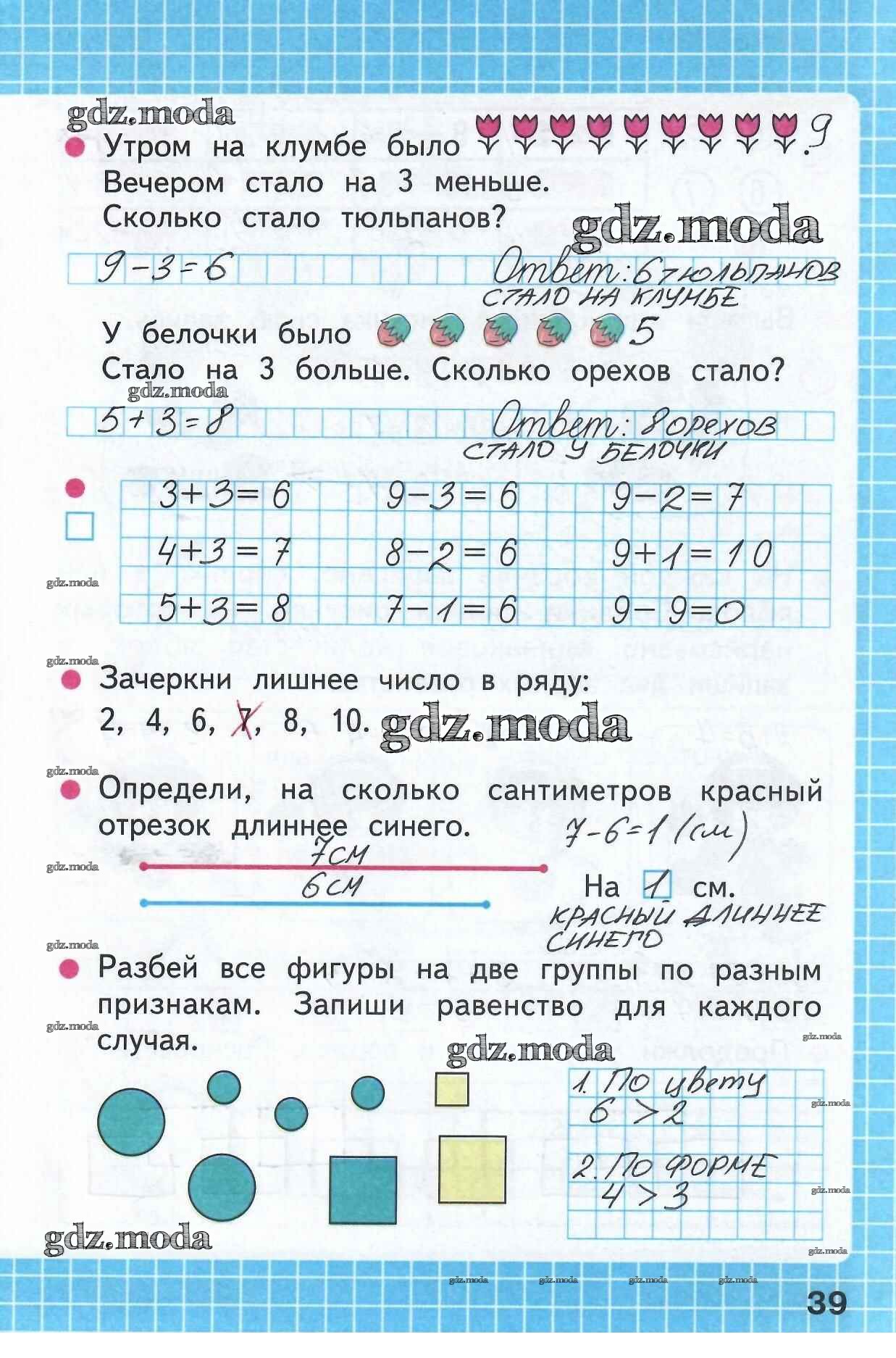ОТВЕТ на задание № 39 Рабочая тетрадь по Математике 1 класс Моро Школа России