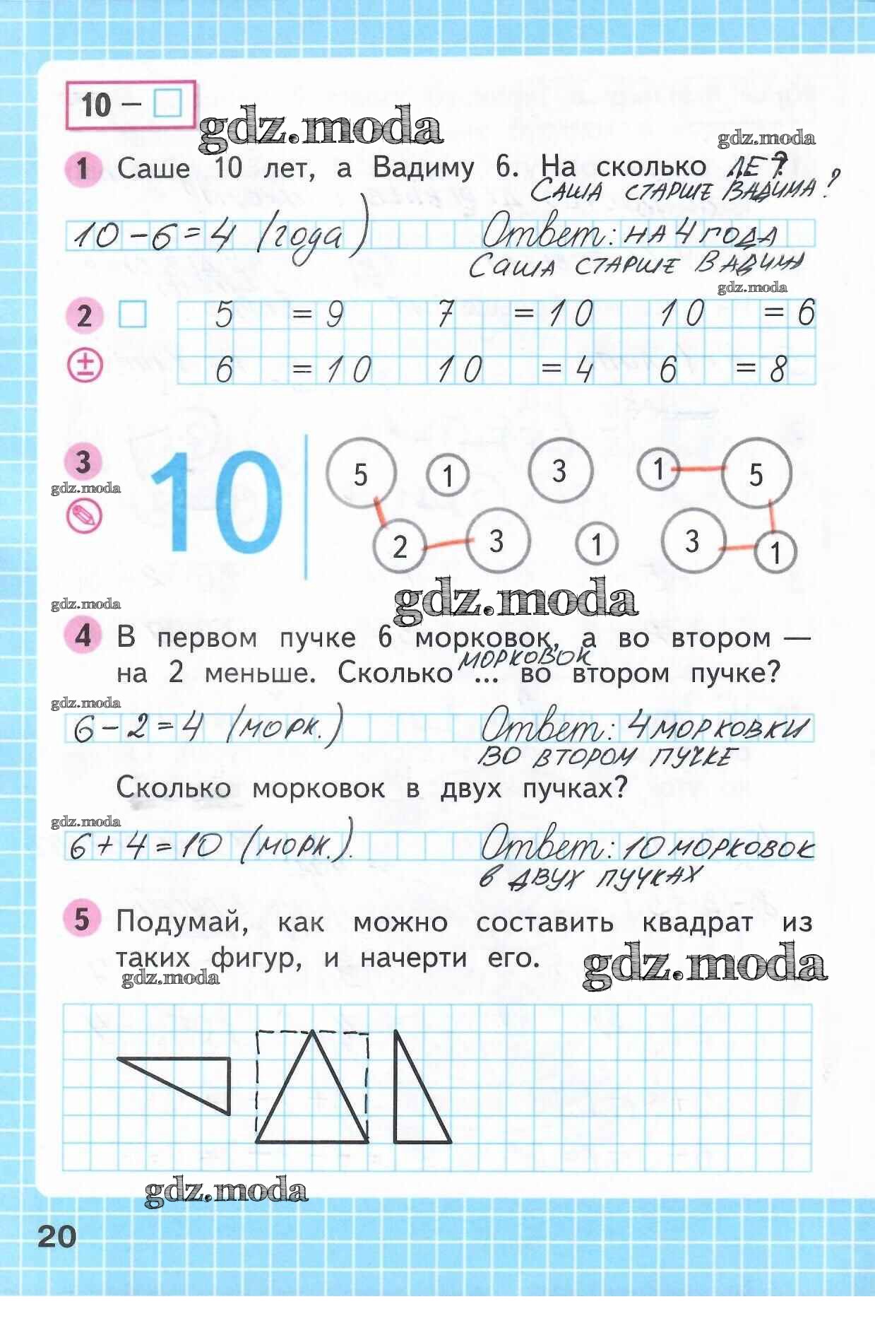 ОТВЕТ на задание № 20 Рабочая тетрадь по Математике 1 класс Моро Школа России