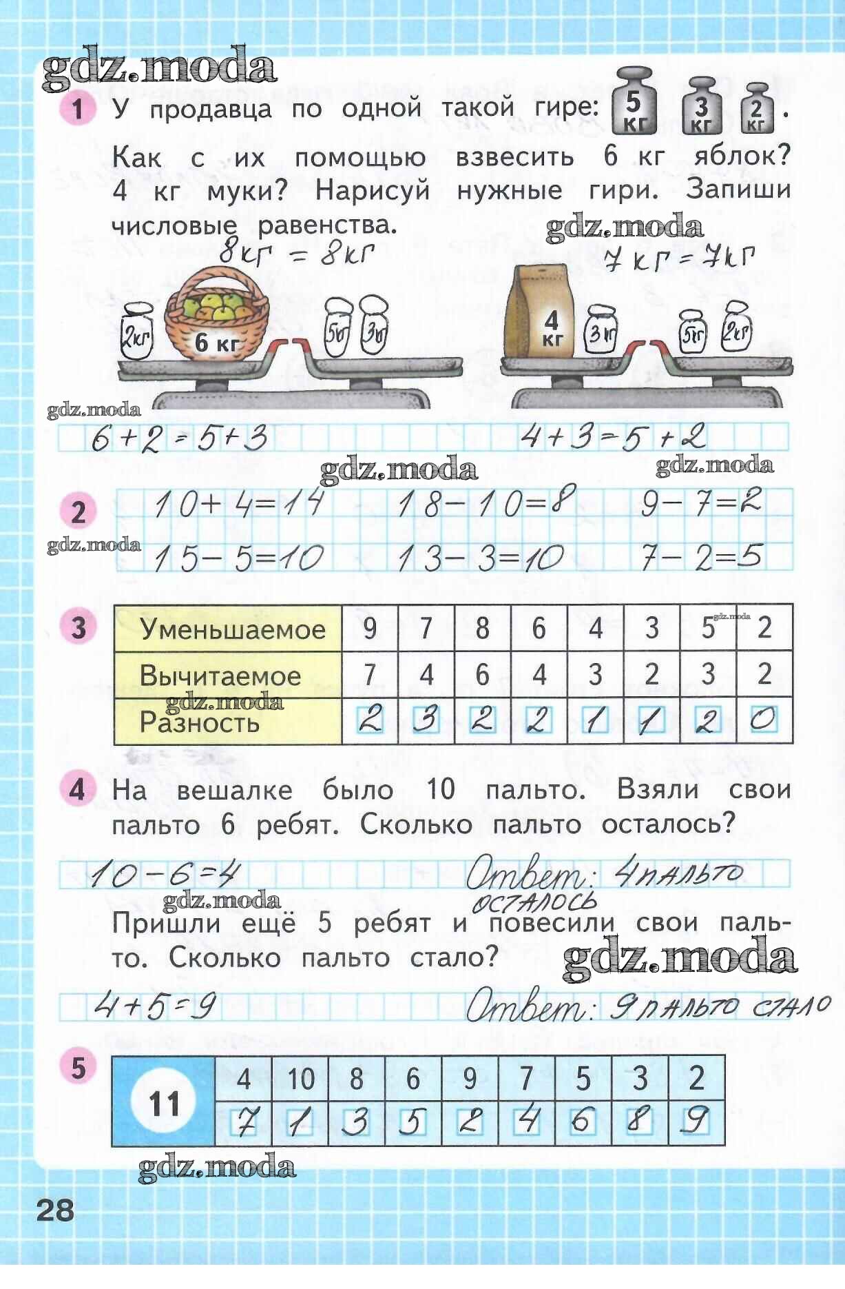 ОТВЕТ на задание № 28 Рабочая тетрадь по Математике 1 класс Моро Школа России