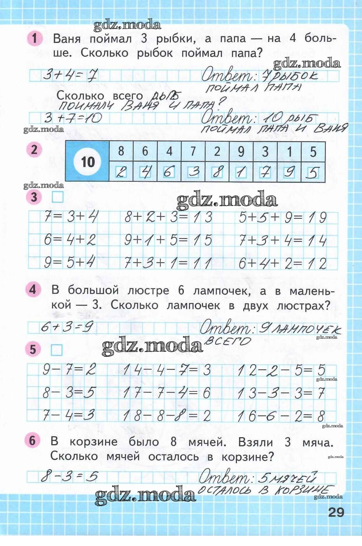 ОТВЕТ на задание № 29 Рабочая тетрадь по Математике 1 класс Моро Школа России