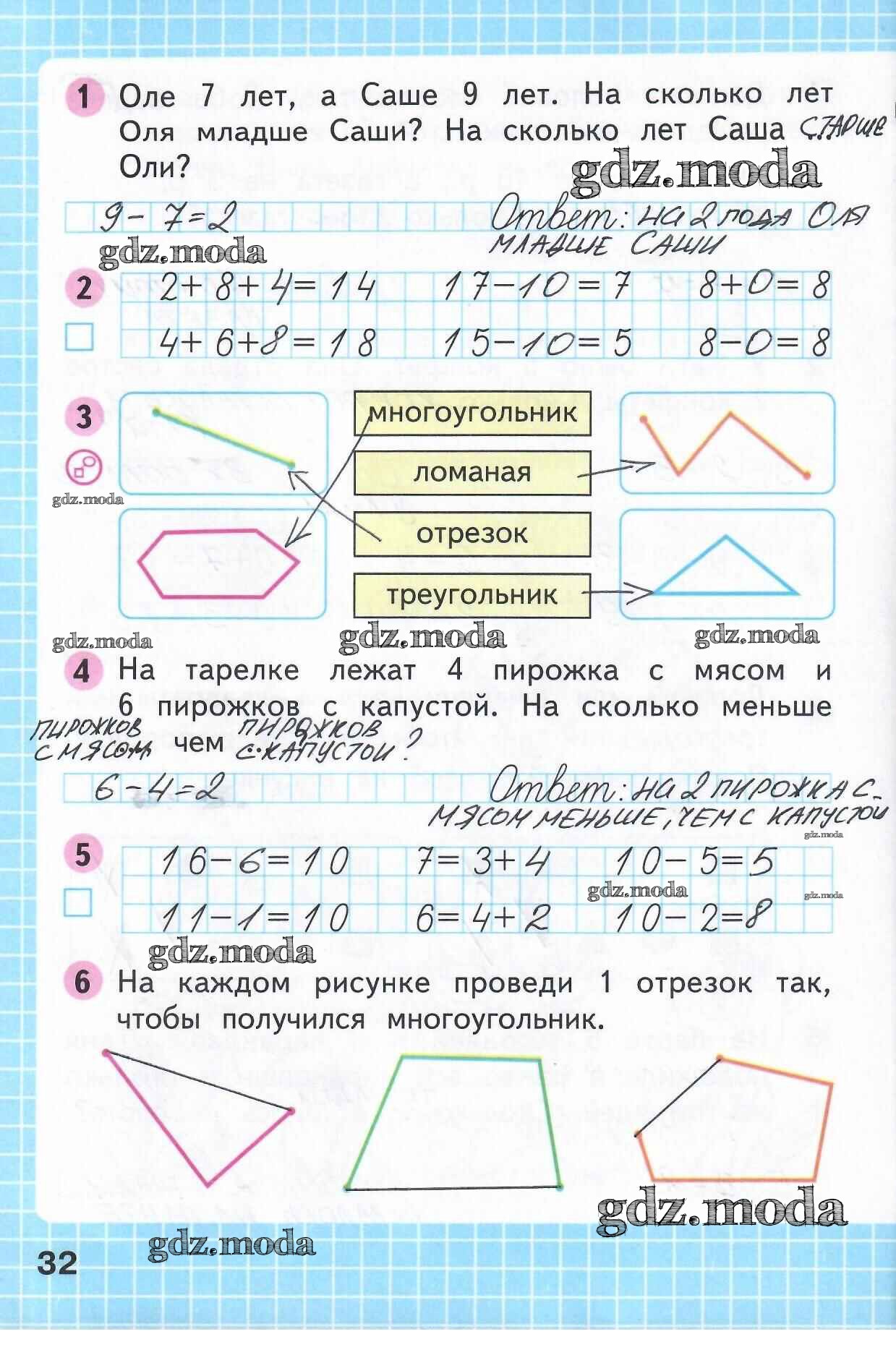 ОТВЕТ на задание № 32 Рабочая тетрадь по Математике 1 класс Моро Школа России