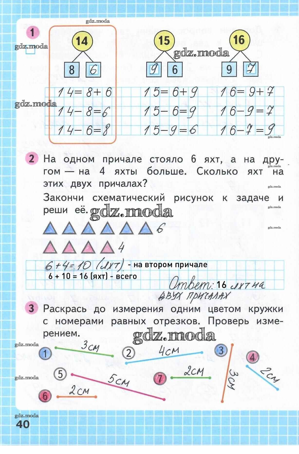 ОТВЕТ на задание № 40 Рабочая тетрадь по Математике 1 класс Моро Школа России